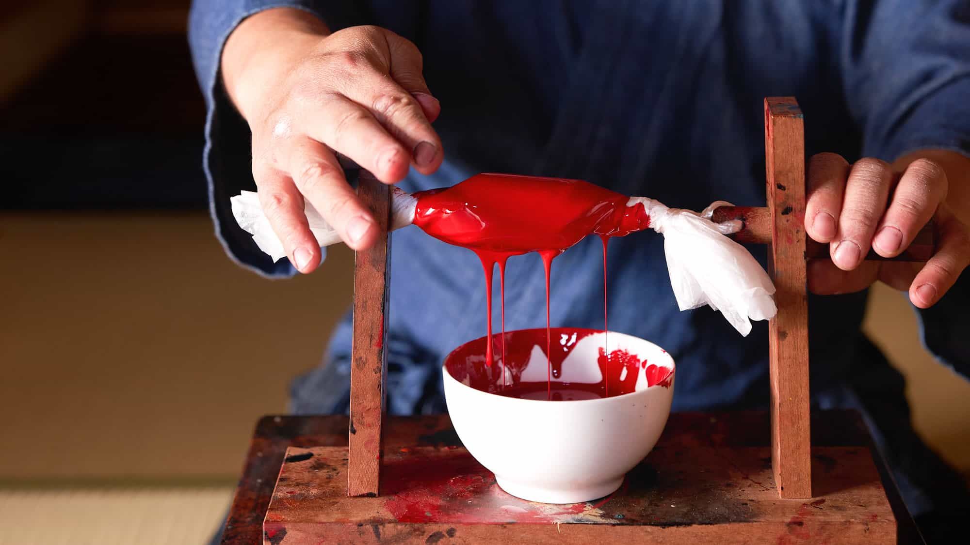 Takayama’s well-honed craftsmanship also relies on the hand and eye, an intricate balance of adding coloured lacquer and then polishing it. Urushi artists also get creative in choosing what to add to the milky white sap in order to produce a new colour or texture. Takayama sources his signature ingredient – powdered oyster shell – locally in Hiroshima, which is also home to Mazda HQ. He adds it to his base coating, a crucial layer that makes the finished piece resistant to water and humidity so it won’t erode even if it cracks. “I want these bowls to be used every day, so I pay extra attention to safety,” he says.